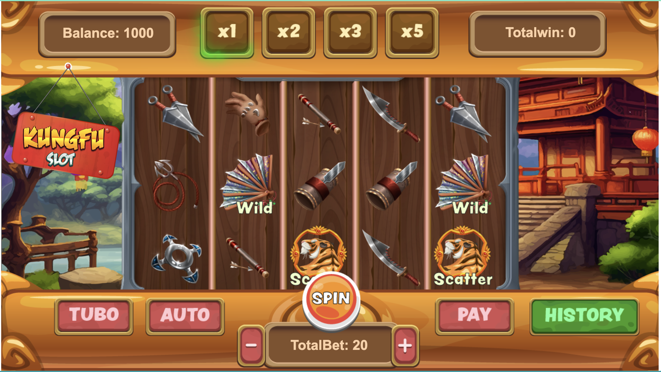Kung Fu Slot is an action-themed digital experience inspired by classic martial arts worlds. The game features a lively set of symbols such as throwing knives, fans, ropes, gloves, and powerful wilds and scatters that bring an energetic kung fu atmosphere to every spin.